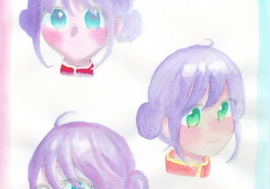 混ぜてみて赤紫を作ったり肌は青みの影っぽくしてみたり、ほっぺはカラーインクでとカラーインク多めですが透明水彩も使って塗りました!