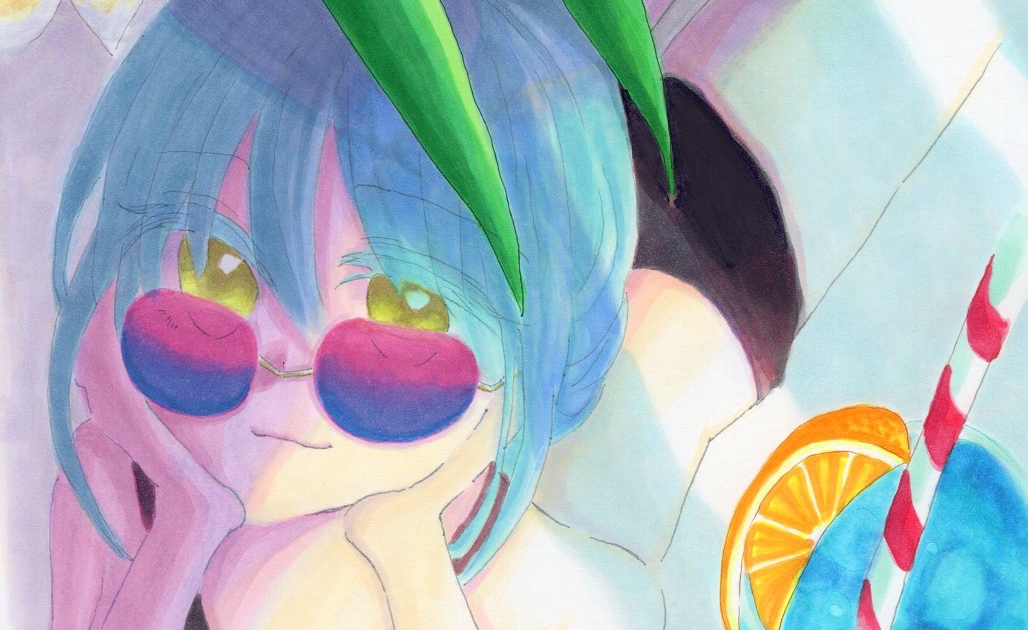 水着にサングラス、トロピカルジュースで夏を満喫する夕影お嬢様を想像しながら描くのも楽しかったです*