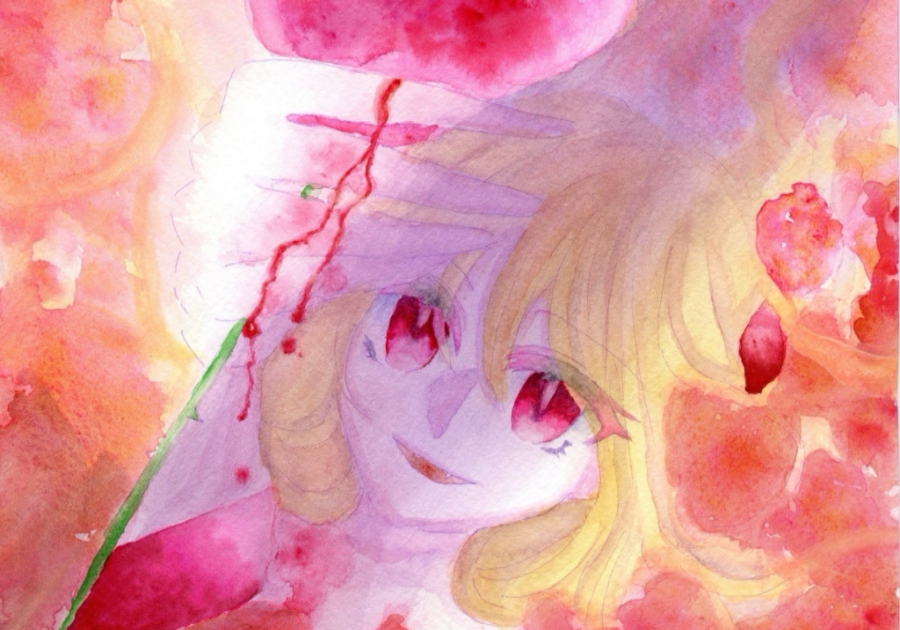 かなり当初と変わりましたがこれはこれで水彩ならではという感じで、持っている花は薔薇には見えないけど滲みがなんだか心臓みたいで気に入っています。